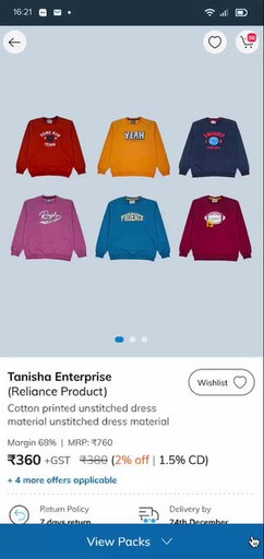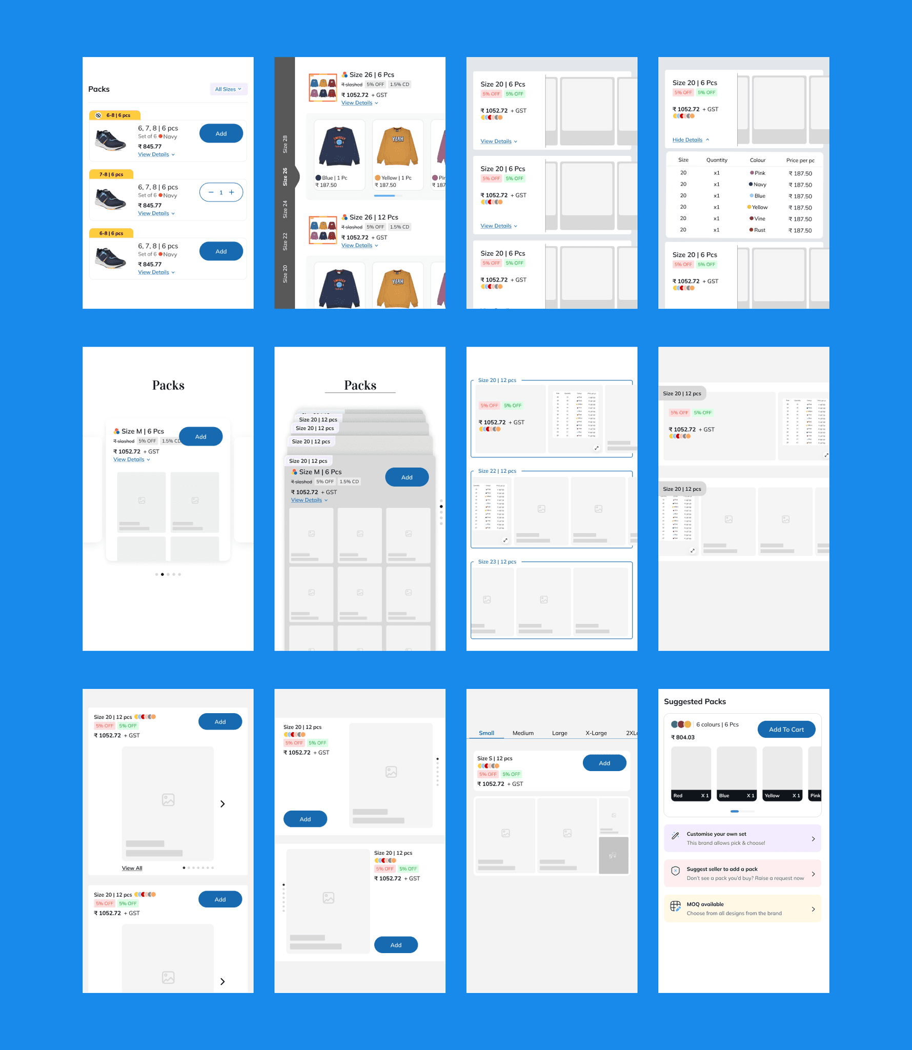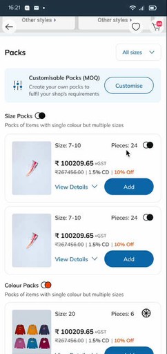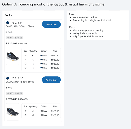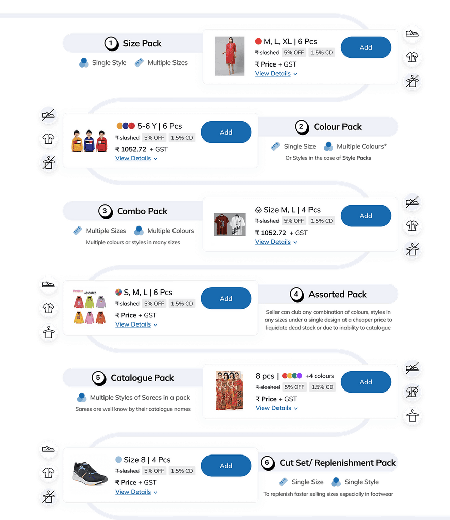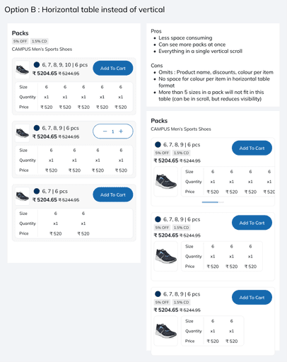 Packs with colour variants would have images in horizontal scroll for retailers to closely evaluate colours and style details with purchasing