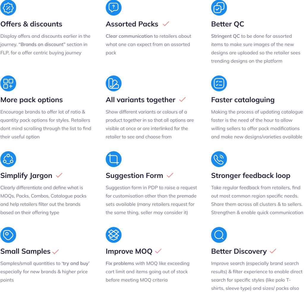 Currently, the purchase journey on our platform is such that instead of asking retailers their needs, we give them available options to scan and choose from.
