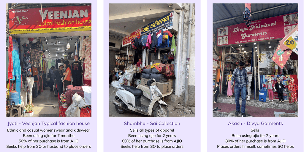 As I understood, while researching and onboarding to AJIO B2B, the life of the product are the retailers, the shop owners in the streets of India’s diverse markets selling everything from footwear and clothing to accessories and beauty products.