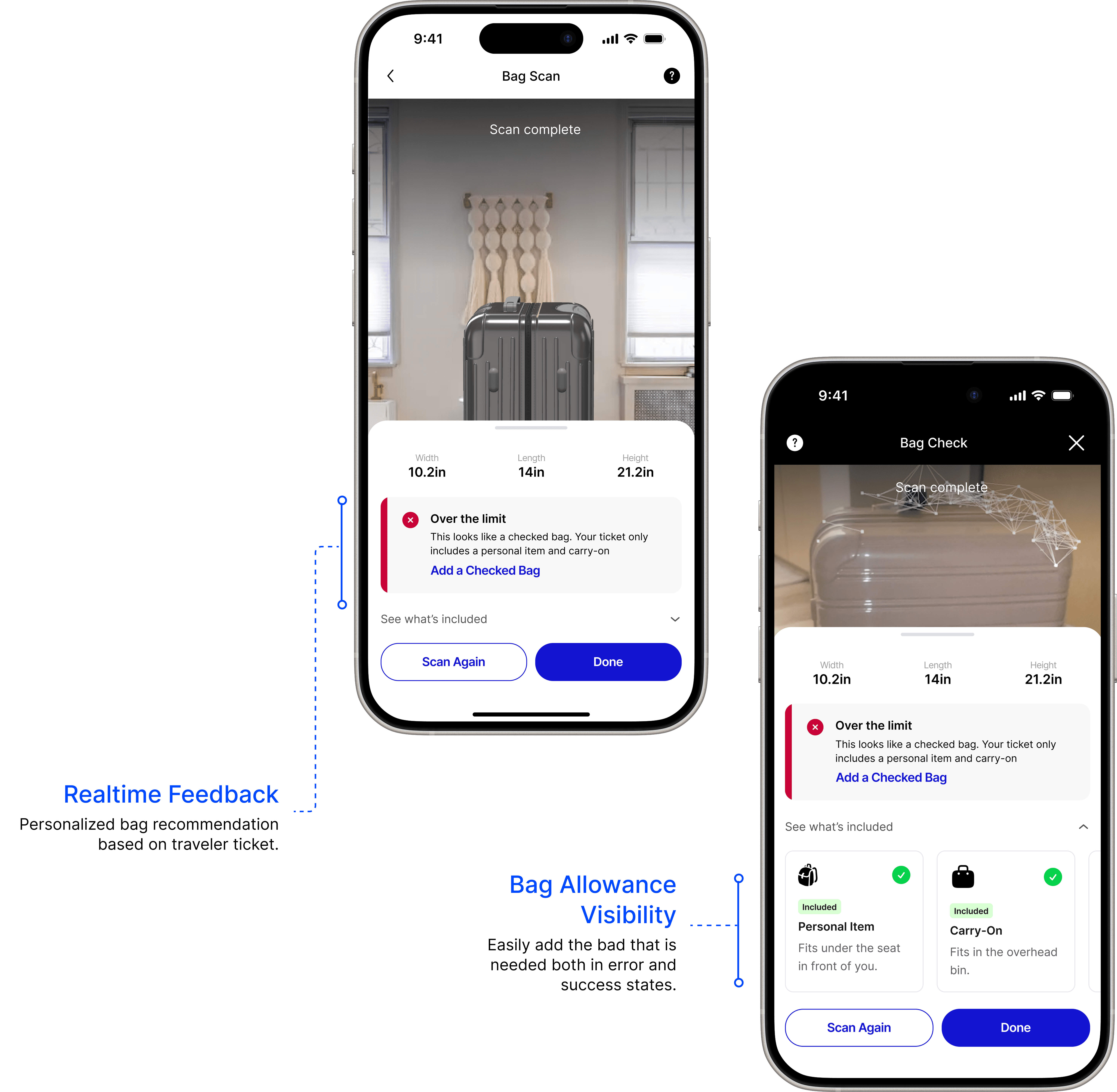 System captures bag size in real time checking against carry-on rules