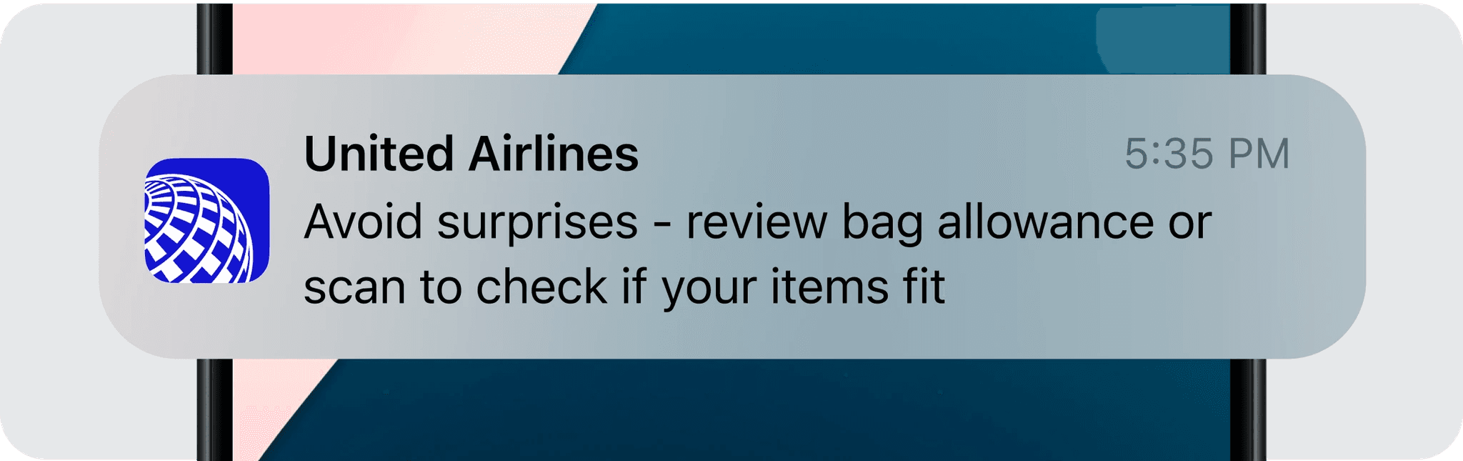 A notification to scan bags or review allowances